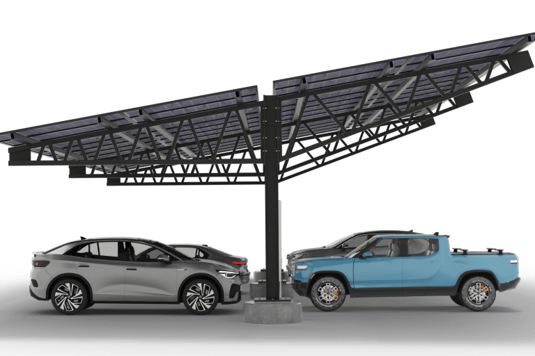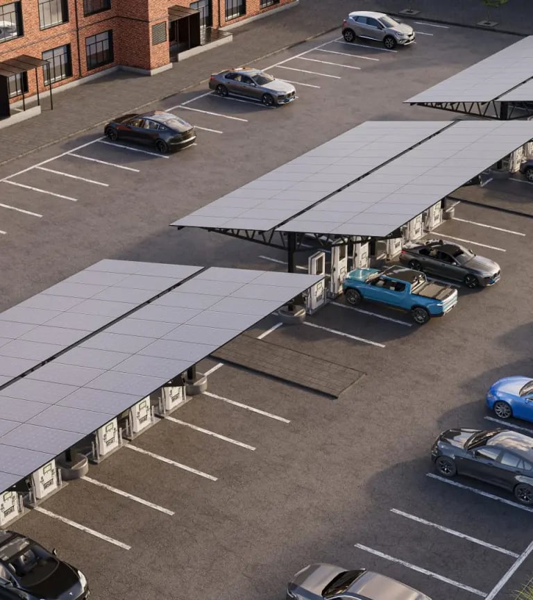 Durable solar parking structures that power EV charging and lighting.
